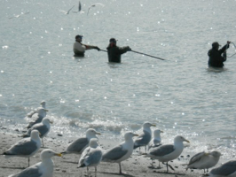 Residents of Alaska can dip-net at several places around Alaska for Red Salmon. We were at the mouth of the Kenai River.