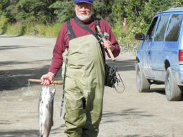 enter into the river headed to upper parts of the river. Commercial fishermen, string out gill nets in cook inlet to intercept the fish, even so over 1,400,000 entered the river. ADFG allowed anglers 6 fish a day, 12 in possession. The fish were flooding the river, almost any day you could catch fish. This is the first time I made a real effort to pole fish for red salmon on the Kenai. Day one I caught two without trying very hard. The next day I caught five. Our last day I fish about 4 hours, hooked seven salmon but only managed to keep two fish. The really big fish got away!